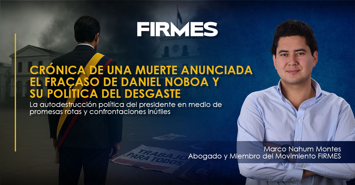 06 Mar Opinión Crónica de una muerte anunciada octubre 24, 2025 By FIRMES 0 comments A poco más de un mes de las elecciones de segunda vuelta que lo enfrentarán a Luisa González, Daniel Noboa parece... Continue reading